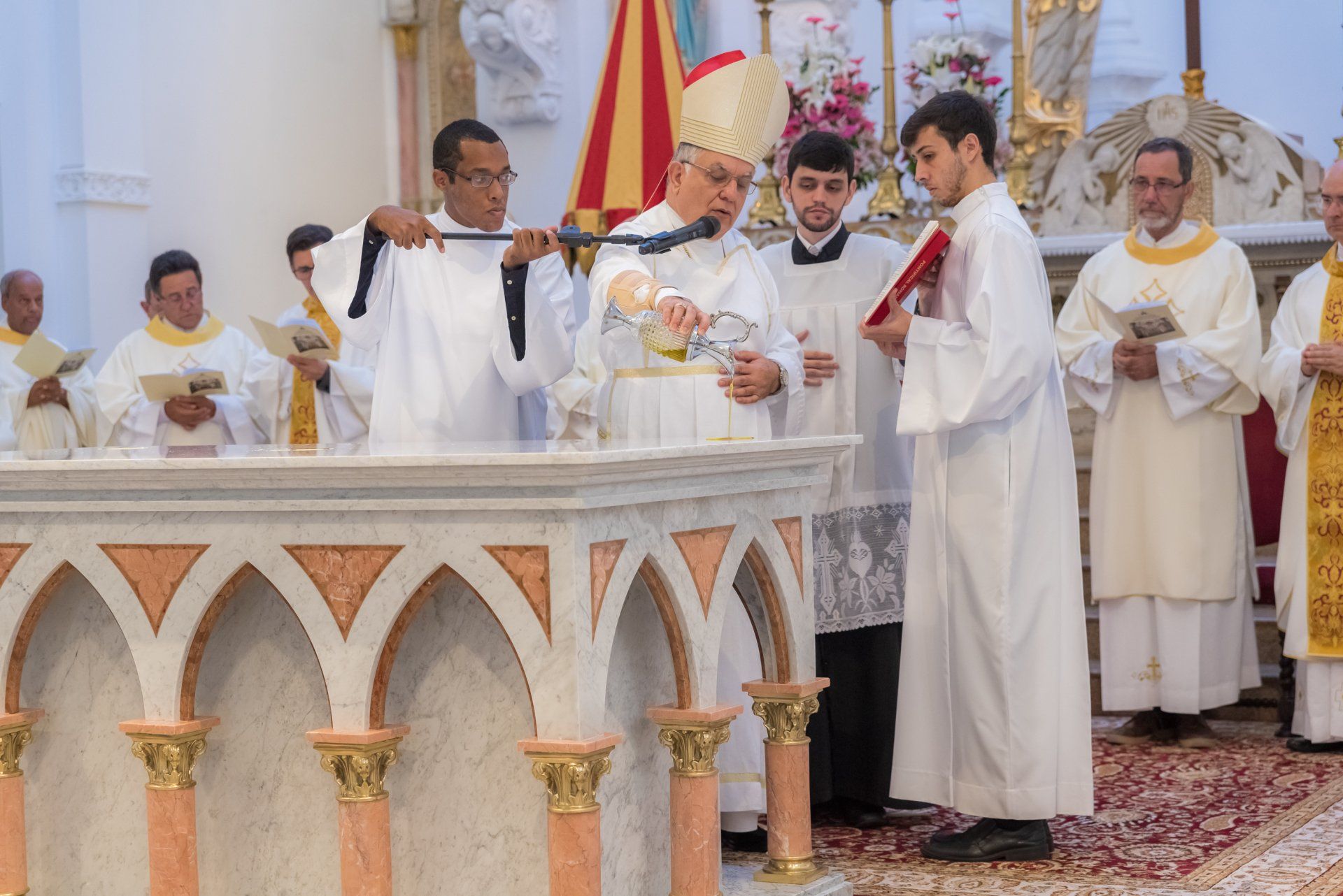 A ação de graças eucarística foi presidida por Dom José Francisco, arcebispo de Niterói, e concelebrada por Dom Alano Maria, arcebispo emérito, além do Pe. Orestes, inspetor , Pe. Gustavo, pároco, e mais de vinte salesianos presbíteros, provindos das casas do Estado do Rio de Janeiro, de Vitória, de Belo Horizonte e de Goiânia. A liturgia foi enriquecida pelo rito de dedicação do novo altar, rara e bela cerimônia, cheia de simbologia e beleza. O altar, realizado em mármores de Carrara, Rosso Verona e Rosa Valência, foi purificado pela água benta; recebeu as relíquias de São João Bosco, de São José Cafasso, de Santa Maria Mazzarello, de São Luís Gonzaga, de São Domingos Sávio, do Beato Miguel Rua e do Beato Luís Variara; foi dedicado pela prece solene do arcebispo; foi ungido com o óleo do Crisma; foi incensado e, finalmente, foi revestido e iluminado.  Depois, sobre ele foi oferecido o sacrifício eucarístico de Cristo, Memorial de sua Páscoa. Tudo acompanhado pelo coro litúrgico regido pelo Maestro Gabriel Delatorre e por uma equipe de cantos que reuniu paroquianos dedicados à música nas celebrações. Em alguns momentos, também se ouviu o grande órgão, em gravações da execução extraordinária do Pe. Marcello Martiniano que são conservadas na memória eletrônica do próprio instrumento, permitindo que sejam acionados os tubos como se o órgão estivesse sendo tocado naquele instante.
